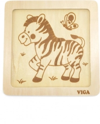 A VIGA márkájú zebra mintás fa puzzle ideális didaktikai játék gyermekek számára, amely fejleszti a motoros készségeket és a kognitív gondolkodást a játékos tanulás által.