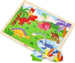 Fedezd fel a szórakoztató fa puzzle-t dinoszaurusz motívummal, amely fejleszti a finommotorikát, a koncentrációt és a logikus gondolkodást. A készlet 24 masszív darabot tartalmaz, és ideális 24 hónapos kortól. A puzzle kényelmes méretű az összeillesztéshez, és minőségi fából készült a tartósság érdekében.