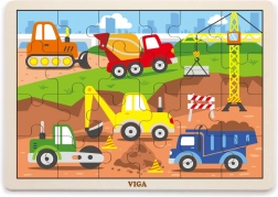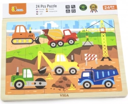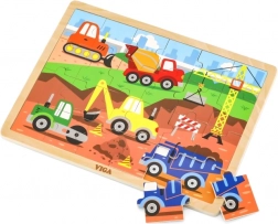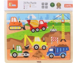 Az építős témájú fa puzzle élénk színeivel és robusztus kivitelével hódít, és bírja a mindennapos játékot. A 24 darabos készlet remek választás az első „nagyobb” kirakóhoz, támogatja a koncentrációt és a vizuális észlelést.