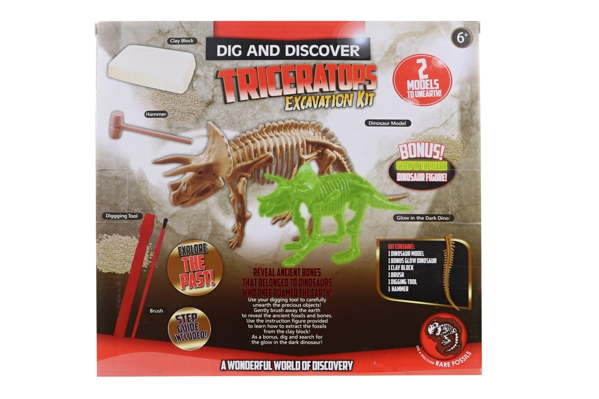 Változtasd a nappalit paleontológiai lelőhellyé. A gyerekek először óvatosan kibányásszák az alkatrészeket, majd összerakják a 10 részes triceratopsz csontvázat, ezután pedig élvezhetik a varázslatot a sötétben világító figurával. A készlet fejleszti a finommotorikát, a türelmet és az őstörténet iránti érdeklődést.