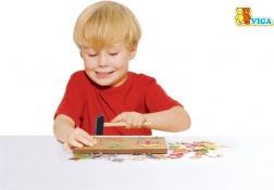 A Viga márka kreatív parafahab szögelős farmja fejleszti a finommotorikát, a logikus gondolkodást és a kreativitást 3 éves kortól. A 24 fa elemmel, a parafalappal, a kis kalapáccsal és a rajzszögekkel a gyerekek saját farmjeleneteket alkothatnak fantáziájuk szerint vagy minták alapján. A biztonságos lekerekített élek és a tartós kivitel rengeteg szórakozást és tanulást biztosít.