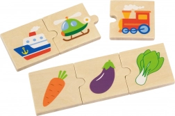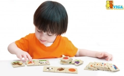 A VIGA fa logikai kirakó játékosan kapcsolja össze a szórakozást és a tanulást. A gyerekek 24 elemet illesztenek 8 értelmes hármassá – például három állat, három közlekedési eszköz vagy háromféle zöldség. Így természetes módon gyakorolják a kategóriák felismerését, a koncentrációt és a szókincset.