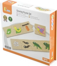 Ez a „növekedési” fa puzzle készlet segít a gyerekeknek megérteni az életciklusokat állatoknál és növényeknél – a magtól vagy tojástól a felnőttkorig. Minden motívum egymásba illeszkedő darabok sorozatából áll, amelyek természetes módon fejlesztik a finommotorikát, az összefüggések felismerését és a kéz–szem koordinációt.