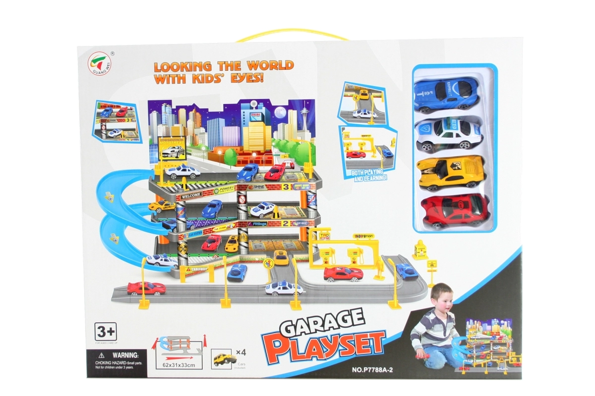 Fedezd fel a három szinten átívelő szórakozást ezzel a gyermekeknek készült háromszintes garázzsal. A csomag tartalmaz 4 kisautót, így a játék azonnal kezdődhet a kibontás után. A garázs nagylelkű méretekkel rendelkezik: 62 × 31 × 33 cm, 3 éves kortól ajánlott, és rengeteg teret kínál a kreatív játékra és versenyzésre.
