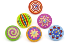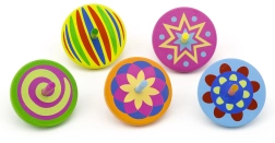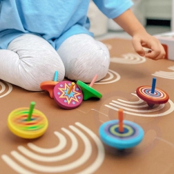 Minden pörgettyű egyedi szett színnel és mintával jár, amelyek forgás közben vonzó vizuális hatásokat keltenek.