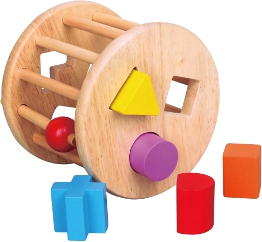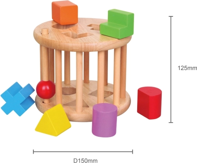 A beillesztő játék természetes fából készült, amely biztosítja a hosszú élettartamot és környezetbarát választást nyújt gyermekének.