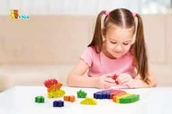 Az élénk színű darabok felkeltik a figyelmet és segítik a színek megkülönböztetését, ami játékos módon tanítja a gyerekeket.