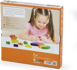 A tartós fafajtának köszönhetően ez a puzzle környezetbarát és hosszú életű. Az élénk színes kivitel piros, kék, zöld és sárga árnyalatokban biztosítja, hogy a gyerekek izgatottan fedezzenek fel új készségeket és színeket.