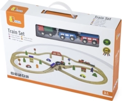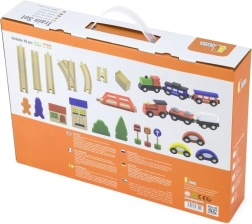 Fedezze fel a kis mozdonyvezetők számára készült szórakozást – ez a gazdagon felszerelt fa vonatpálya akár 49 darabbal kínál kreatív építést és játékot. A készletben sínpálya, 2 mozdony, 4 vagon, 3 kisautó és számos kiegészítő található, amelyek fejlesztik a finommotorikát, a képzeletet és a koordinációt. Ideális ajándék 3 éves kortól.