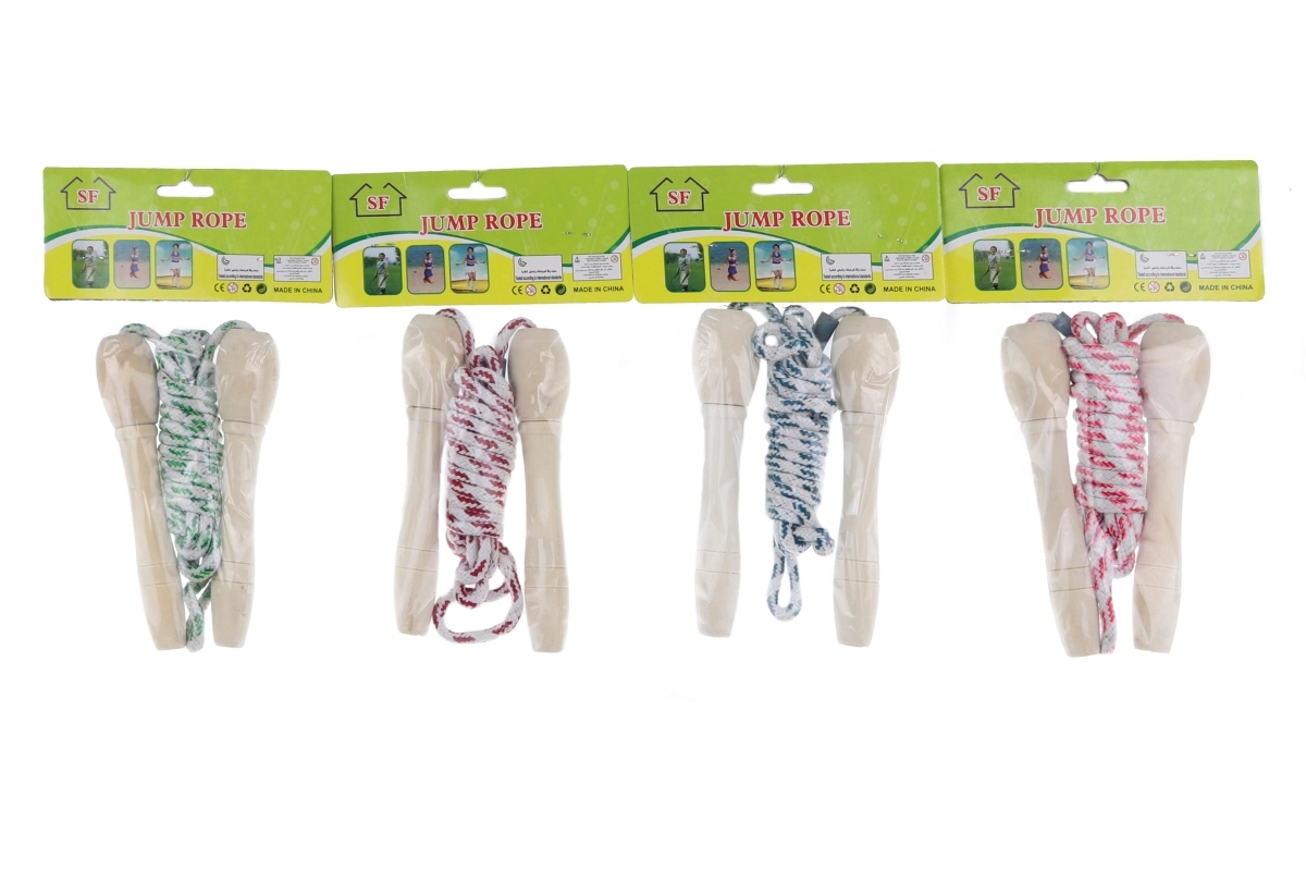 Klasszikus, kb. 2 m hosszú fa ugrókötél 3 éves kortól. Ideális mindennapi játékhoz és aktív szabadtéri mozgáshoz. Egyszerű használat, tartós kivitel, és támogatja a koordinációt, az egyensúlyt és a mozgásügyességet.