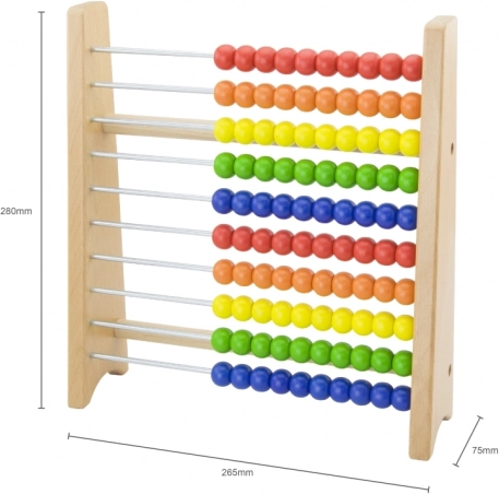 A stabil felépítés és a kellemes kb. 26,5 × 28 × 7,5 cm-es méretek kényelmes használatot biztosítanak otthon és óvodában egyaránt. Az abakusz támogatja a koncentrációt, a kéz–szem koordinációt, és lehetővé teszi a természetes, képernyőmentes játékos tanulást.