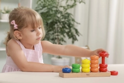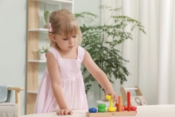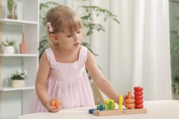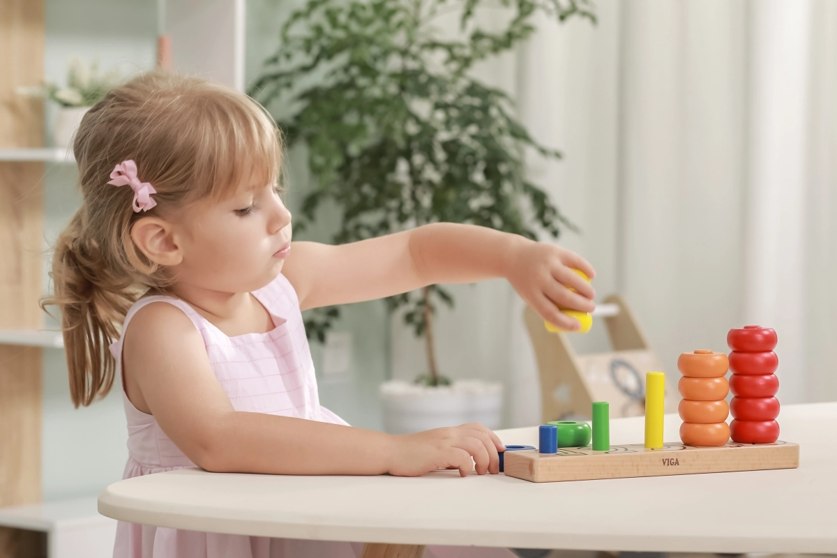 A gyűrűk felfűzése támogatja a mozdulatok pontosságát, a türelmet és a koncentrációt – ideális az óvodás korosztálynak.