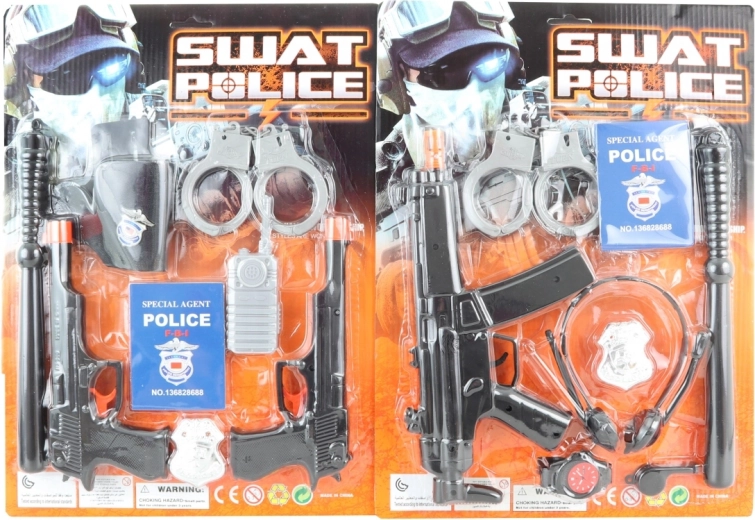 Válj kis törvényőrként ezzel a gazdagon felszerelt rendőrségi készlettel. Mindent tartalmaz, amire egy kis rendőrnek szüksége van: bilincs, igazolvány, jelvény, gumibot, géppisztoly, fülhallgató, óra, síp, valamint opcióként 2 pisztoly tokkal és adór-vevő. Ideális 3 éves kortól, szerepjátékhoz és a fantázia fejlesztéséhez kiváló.