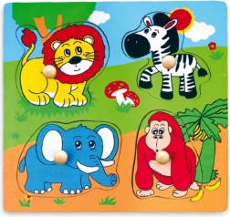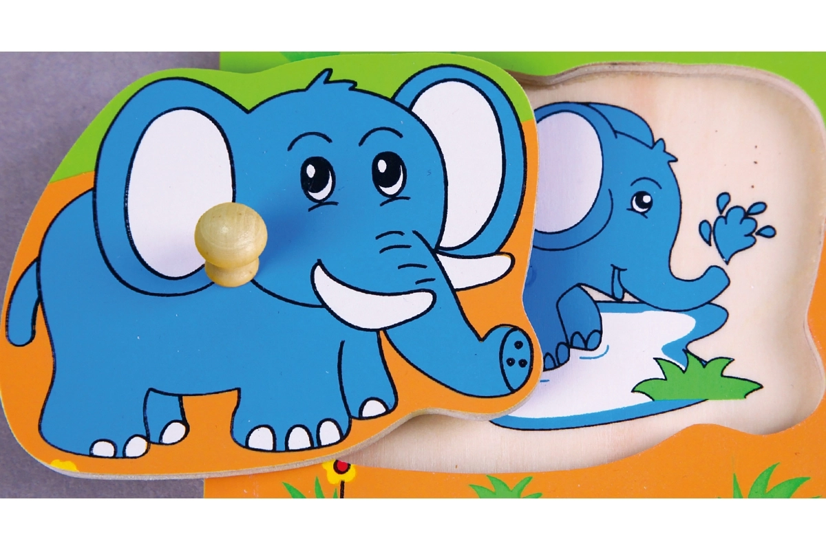Ez a minőségi, safari motívumos fa beillesztő ideális első kirakó kisgyermekeknek. Minden darab fa gombbal rendelkezik a könnyű megfogásért, a hordozó táblán pedig megfelelő sziluett segíti a tájékozódást.