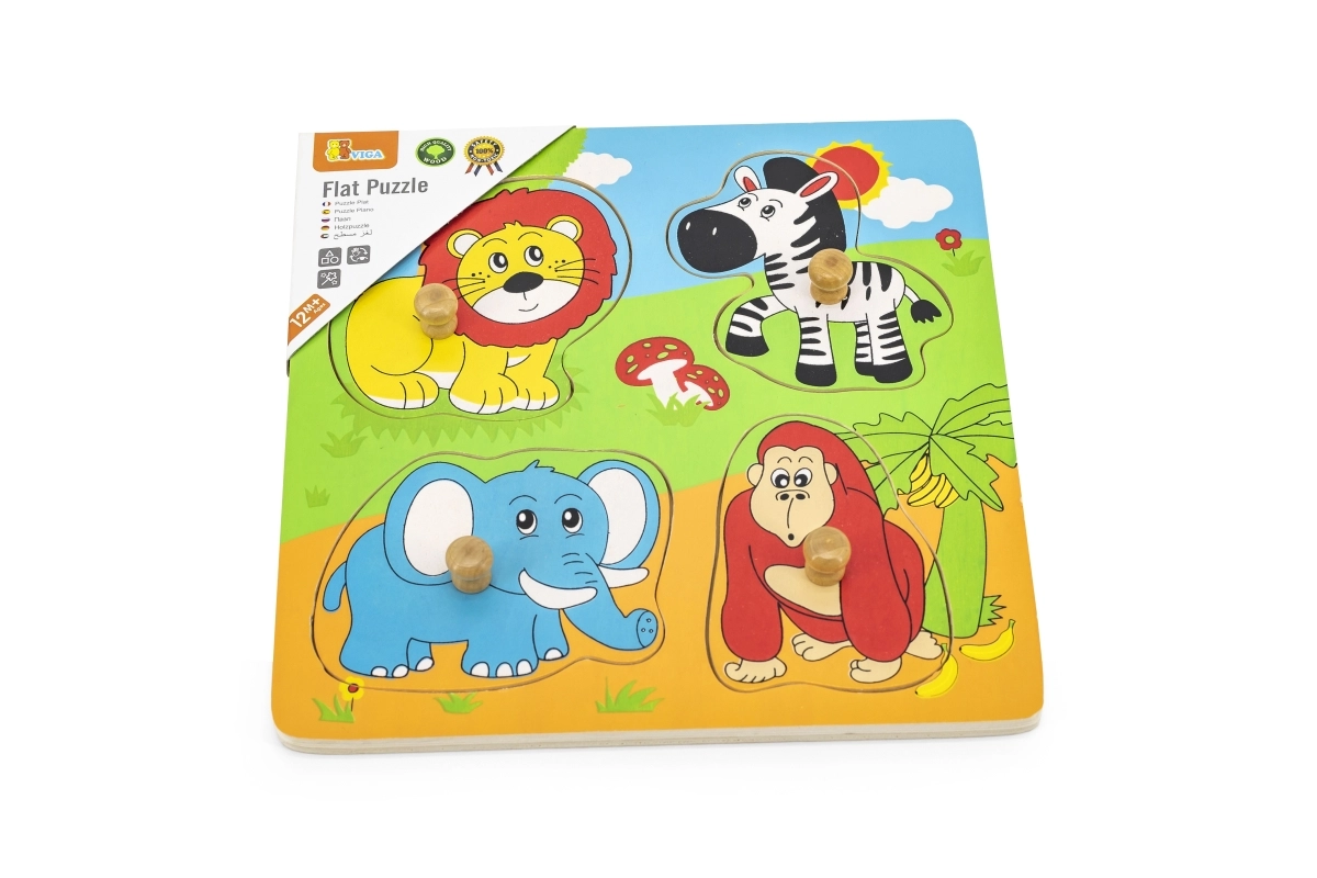 Masszív kivitelének és biztonságos anyagainak köszönhetően a gyerekek játékos formában gyakorolják a finommotorikát, a logikus gondolkodást és a türelmet. A színes grafika fejleszti a vizuális észlelést és segít megtanulni az állatneveket.