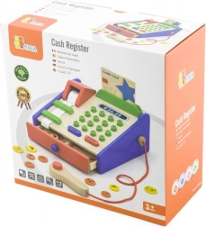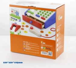 A pénztárgép túlnyomórészt fából készült, tartós műanyag elemekkel kiegészítve. Ideális boltos szerepjátékhoz otthon és az óvodában, ahol természetes módon fejleszti a logikus gondolkodást, a kognitív készségeket és a számfogalmat a Montessori szellemiségében.