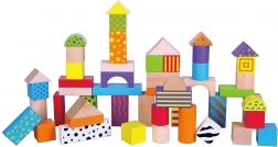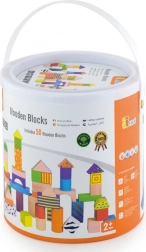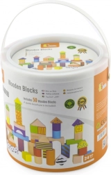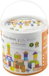 Ez a sokoldalú fa építőkocka-készlet végtelen lehetőséget kínál tornyok, hidak és házikók építésére. Az elemek kellemes tapintásúak, sima élekkel rendelkeznek, és színes lakkozást kaptak a vonzó és biztonságos játékért. A praktikus fogantyús vödör megkönnyíti a tárolást és a hordozást.
