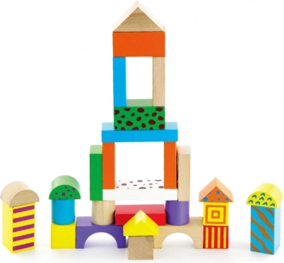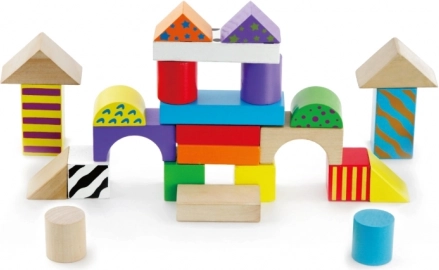 Változatos formák – kockák, hengerek, ívek és tetők – serkentik a fantáziát, és támogatják a finommotorikát és a térbeli gondolkodást.