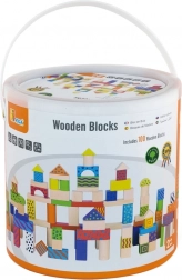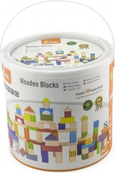 Fedezze fel a kis építők számára készült fa építőkockák szórakoztató készletét! A vödörben 100 darab, különböző alakú és színű elem található, valamint egy képes ötletfüzet építési tippekkel. A kockákkal való játék fejleszti a finommotorikát, a kreativitást és a térbeli képzelőerőt, 2 éves kortól ideális. A praktikus, füllel ellátott vödör megkönnyíti a tárolást és a hordozást.