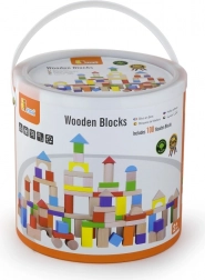 Fedezze fel a fa építőkockák időtálló szórakozását, amelyekkel a gyerekek tornyokat, hidakat és saját kis városukat építhetik. A készlet 100 darabot tartalmaz változatos színekben és formákban, méretük 2,5 és 7,5 cm között van. A fogantyús, praktikus vödör megkönnyíti a tárolást és a hordozást, így a kockák mindig kéznél lesznek.