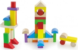A különböző formájú, színes fa kockák pakolásra és építésre ösztönzik a gyerekeket, így természetes módon fejlesztik a fogást, a szem–kéz koordinációt és a térbeli képzelőerőt.
