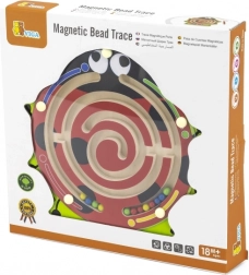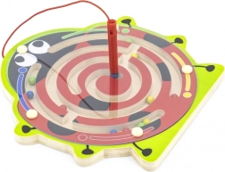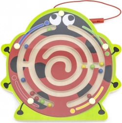 Szórakoztató és oktató jellegű, katicabogár alakú fa útvesztő, amely segíti a gyerekeket a finommotorika, a kéz–szem koordináció és a logikus gondolkodás fejlesztésében. A mágneses tollal a gyerekek biztonságosan vezetik a színes golyókat a spirális pályán, miközben gyakorolják a koncentrációt és a türelmet. Ideális játék 18 hónapos kortól.