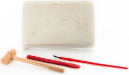 - Teljes csomag: agyagtömb, érmék/rögök, ecset, véső/spatula és kalapács