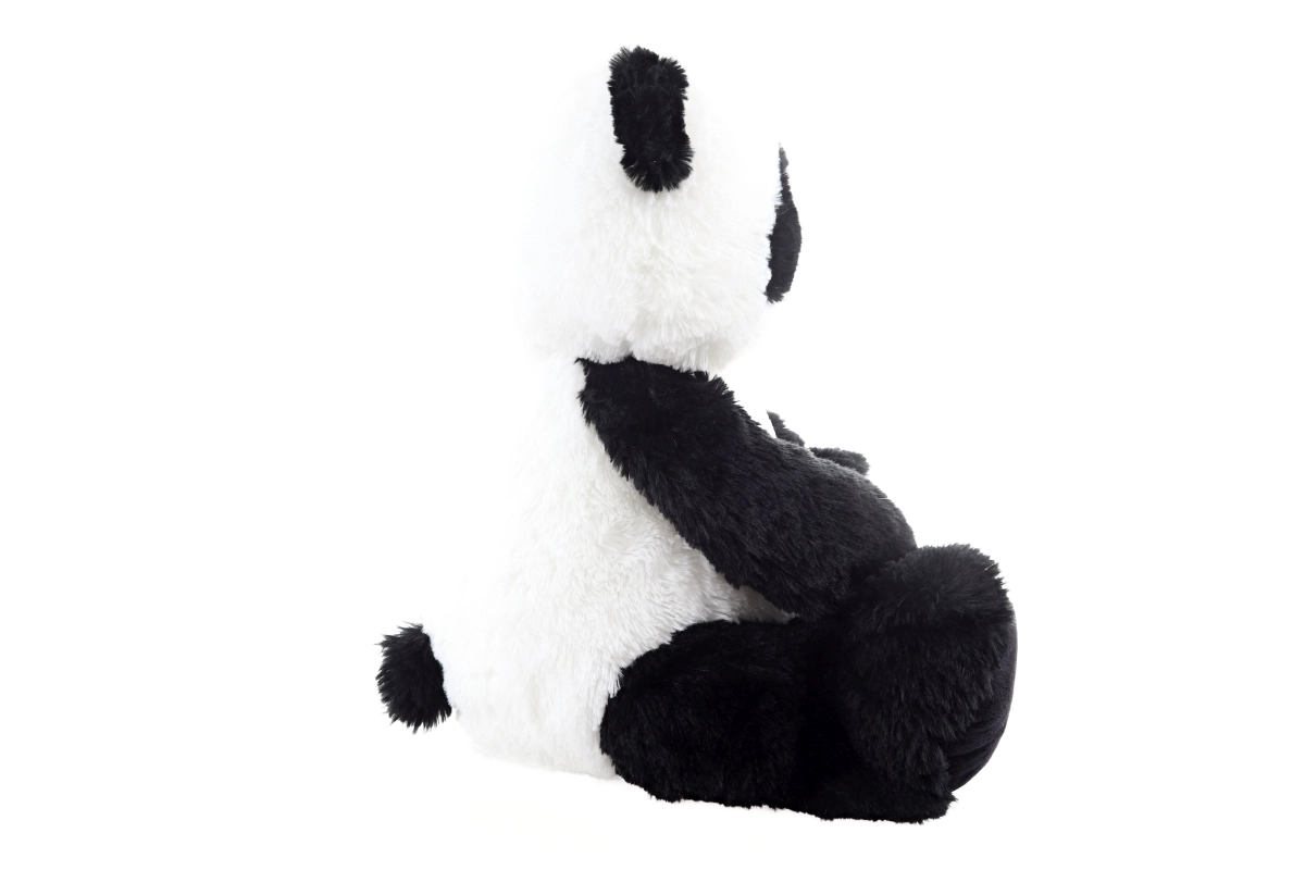 - Élethű panda megjelenés – fekete-fehér kivitel aranyos fülekkel és nagy tappancsokkal.