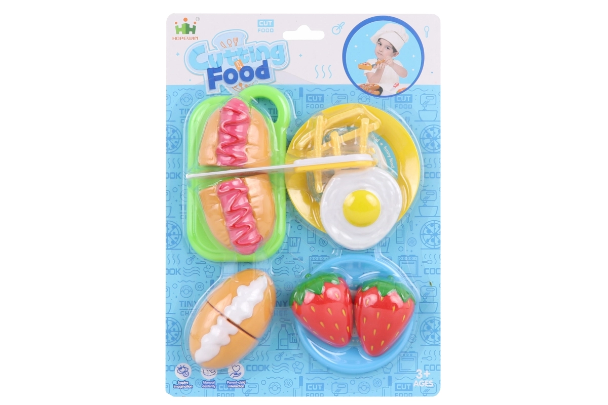 Ez a kreatív ételvágó készlet valósághű élményt nyújt a gyerekeknek az ételkészítésből. Az egyes darabokat tépőzár kapcsolja össze, így könnyen „felvághatók”, majd újra összerakhatók – a móka sosem unalmas, miközben támogatja a motorikus készségek fejlődését.
