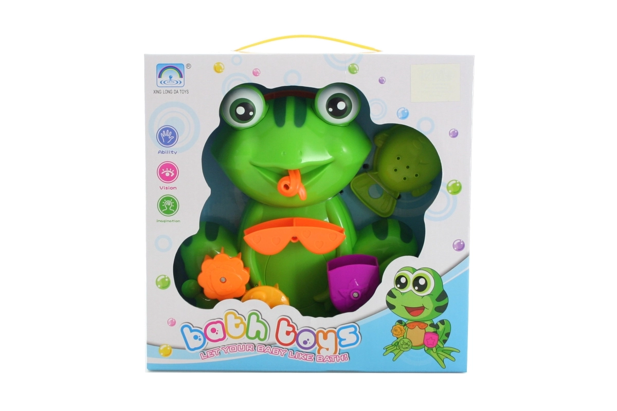 Szórakoztató műanyag fürdőbéka tapadókorongos, könnyű rögzítéssel, amely játékká varázsol minden fürdést. Tartozik hozzá egy aranyos, halacska alakú vízöntő edényke is. Ideális 3 éves kortól. Egyszerű rögzítés, vizes játékok és finommotorika fejlesztése, tartós műanyag és biztonságos fürdőszórakozás.