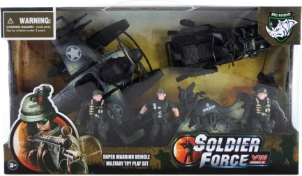 Akciós katonai készlet kis hősöknek, benne repülő, csónak, motor és 3 katona figura. Tartós műanyag kivitel, ideális 3 éves kortól és izgalmas kalandjátékokhoz.