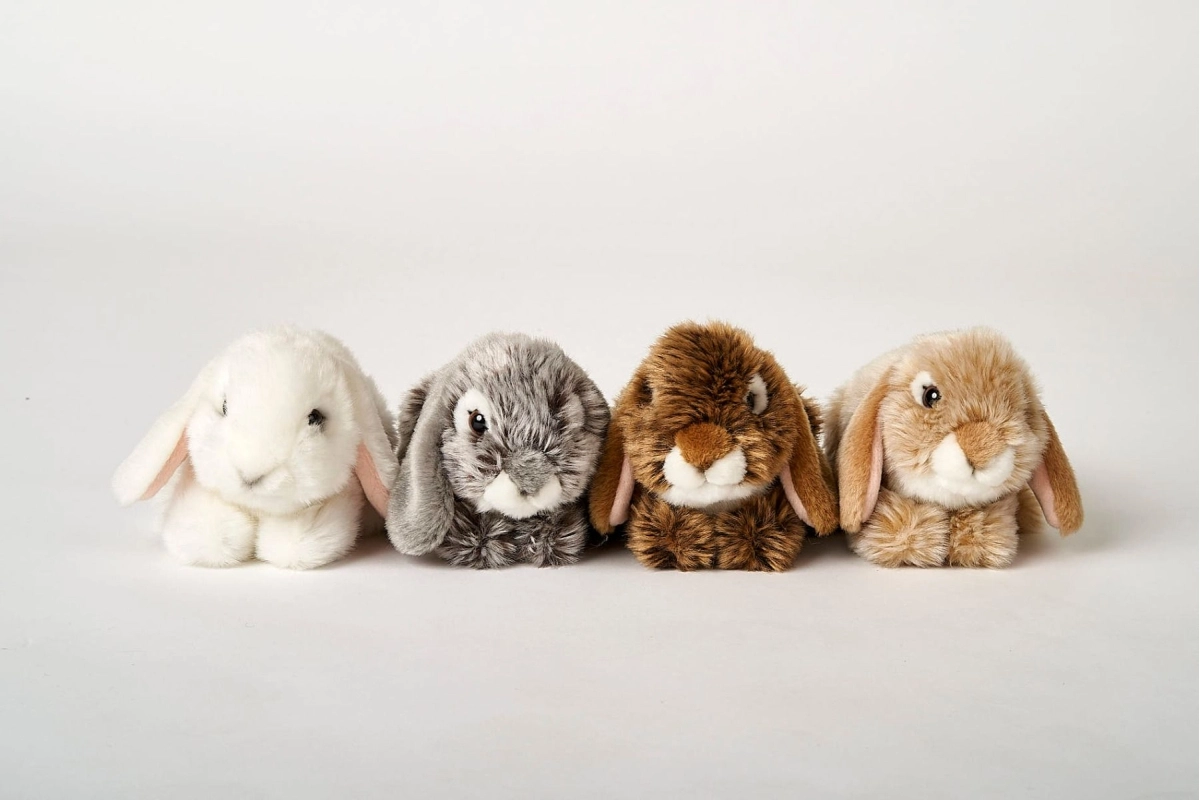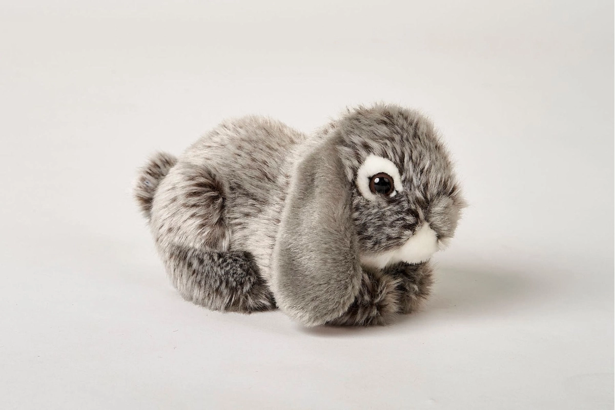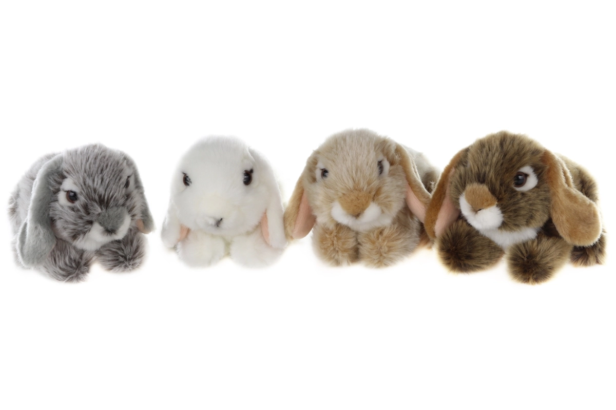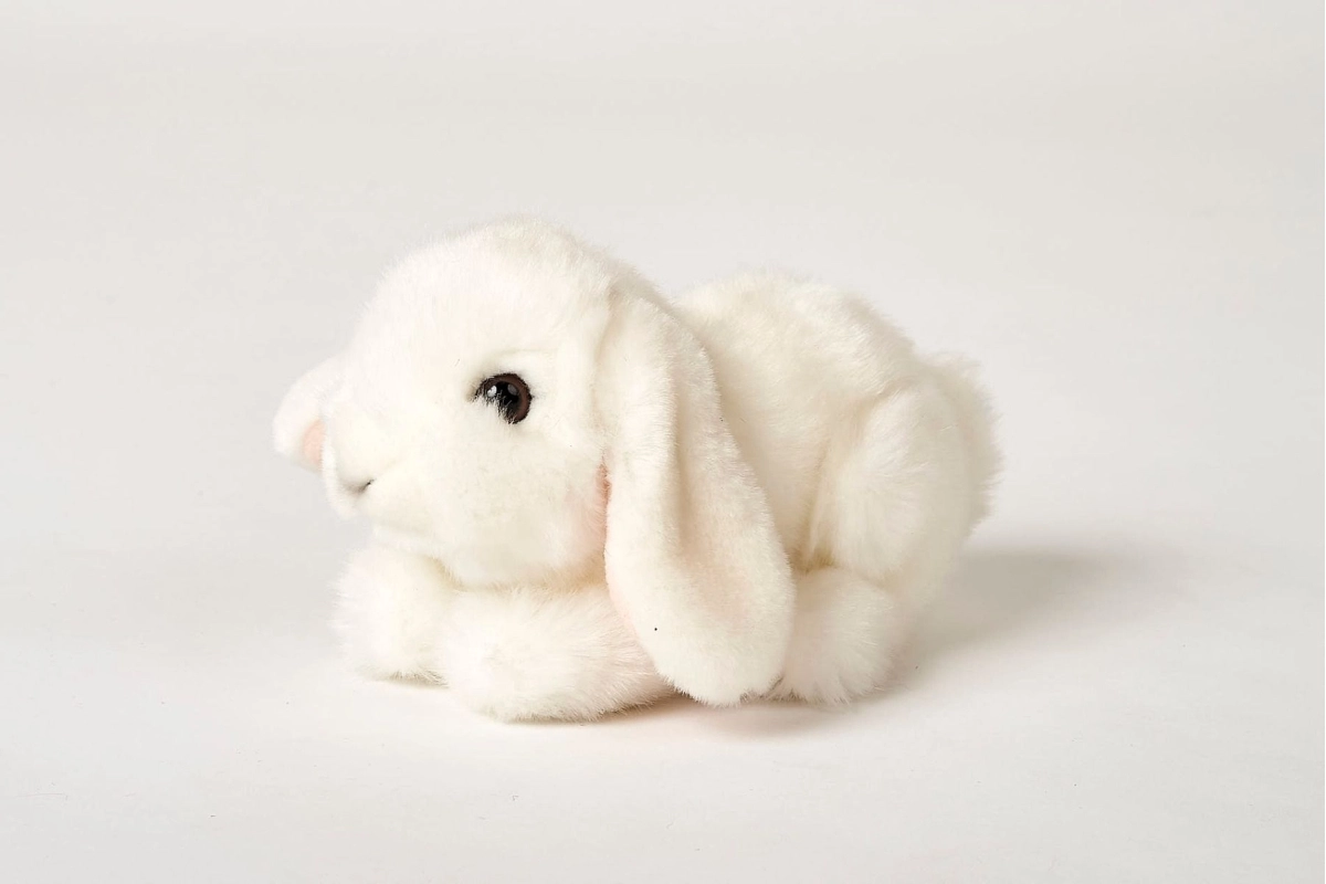 Aranyos plüss nyuszi 18 cm-es méretben, puha, könnyű, és ideális első barát már 0+ kortól. Remek ajándék kiságyba, babakocsiba és útra is.