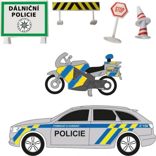 Ez a készlet autentikus élményt nyújt az autópálya-rendőrség munkájából, ahogyan az utakon látható. A fény- és hanghatásokkal felszerelt fém rendőrautó, a műanyag motor és a közlekedési táblák támogatják a kreatív játékot és a fantázia fejlődését. A visszahúzós meghajtásnak köszönhetően a járművek gyorsan elindulnak, és a szórakozás máris kezdetét veszi.