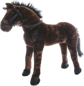A nagy plüss ló ideális játékra és ülésre is. Stabil szerkezettel, 100 kg teherbírással rendelkezik, és kantárral és szárakkal van felszerelve. Méretek kb. 70 × 60 × 20 cm. Ajánlott 3 éves kortól.
