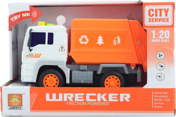 A szórakoztató, elemes kukásautó örömet szerez minden kis sofőrnek. A motorháztetőn lévő gombok megnyomására valósághű hangokat ad és világít, ami támogatja a fantáziát és a szerepjátékot. Kompakt mérete ideális beltéri és kültéri szórakozáshoz, és a elemek a csomag részét képezik.