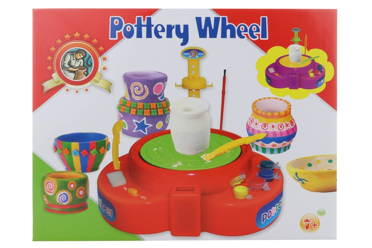 Fejleszd a gyerekek kreativitását és finommotorikáját ezzel a komplett otthoni kerámia készlettel. A fazekaskorong 3× AA elemmel működik (nem tartozék), így nem kell konnektor, és bárhol alkothattok. A mellékelt festékeknek, ecseteknek és formázó gyurmának köszönhetően a gyerekek azonnal nekiláthatnak, és elkészíthetik első tálkáikat, vázácskáikat vagy tányérkáikat.