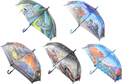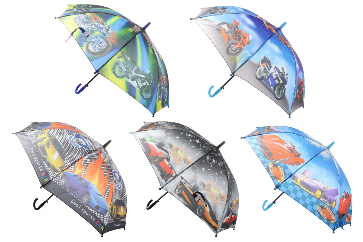 Élvezze a megbízható védelmet az eső ellen ezzel az esernyővel, amelyet autós és motoros, figyelemfelkeltő dizájn díszít. A automata (kilövő) mechanizmusnak köszönhetően egyetlen gombnyomással kinyitható, amit különösen hirtelen záporoknál, iskolába vagy munkába menet fog értékelni.