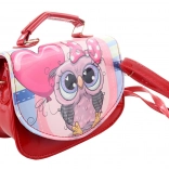 Ez az elegáns, kis méretű, piros táska bájos bagoly motívummal, masnival és szívecskékkel díszítve igazán figyelemfelkeltő. A fényes felület és az aranyszínű részletek stílusos megjelenést adnak, amely illik sétákhoz, látogatásokhoz és gyerekzsúrokhoz. Kompakt méretének köszönhetően kényelmesen hordható, és elfér benne minden apróság, amit a gyerekek magukkal szeretnének vinni.