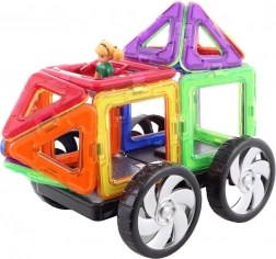 Kreatív mágneses építőkészlet gyermekeknek, 16 színes elemmel, amelyekkel számtalan formát és tárgyat lehet összeállítani. Szórakozás és tanulás egyben, 3 éves kortól.<\div>