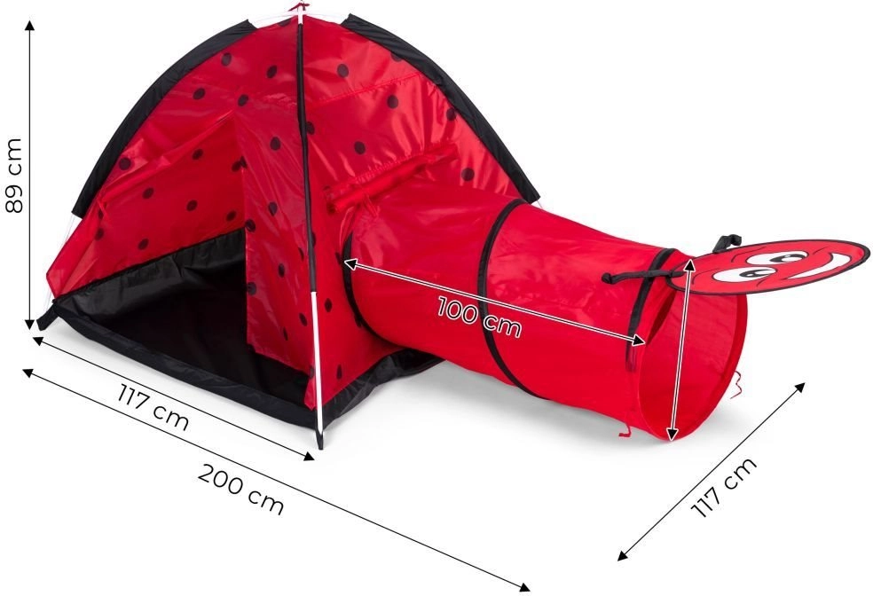 Változtassa a szobát vagy a kertet kalandokkal teli hellyé. A katicás gyereksátor felfedezésre és kreatív játékra ösztönzi a kicsiket. Az egybejáratos iglu-konstrukció és az alagútcsatlakozás támogatja a mozgást, a kúszást-mászást és a bújócskát, fejlesztve a motorikát és a fantáziát. A könnyű váznak köszönhetően a sátor könnyen áthelyezhető, így a gyerekek bárhol élvezhetik.