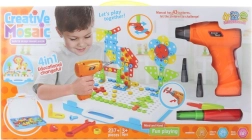 Ez a csavarozós építőkészlet ideális a kis építőknek, akik szeretnek alkotni és összeállítani. A különféle alakú és színű elemek a műanyag csavarokkal könnyen rögzíthetők a lyukacsos táblába, akár kézi csavarhúzóval, akár a gyerek akkumulátoros fúróval, amely 2× AA elemmel működik (nem tartozék).
