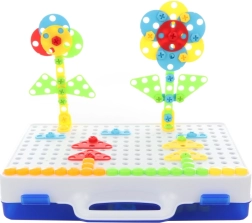 Az elemekből virágok, minták és egyszerű 3D tárgyak készíthetők. A gyerekek játékos formában gyakorolják a finommotorikát, a logikát és a képzelőerőt.