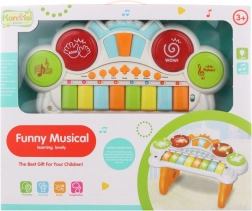 Kifejezetten gyerekek számára tervezett kis zongora kiváló módja annak, hogy megismertesse a kicsiket a zenével és a ritmussal. Az ergonomikus kialakítású zongora kényelmes játékélményt biztosít a kis kezeknek, és érzékszervi élményeket nyújt a fényhatások által. Az ideális zenei eszköz, amelyet három éves kortól lehet használni, serkenti a kreativitást és a motoros készségeket.