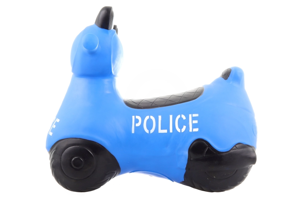 Az ugráló segíti a gyerekeket a stabilitás, a mozgáskoordináció és az alsó végtagok erejének fejlesztésében. A rendőrségi megjelenés támogatja a fantáziát és a szerepjátékot. A csomagban található praktikus pumpa gyors üzembe helyezést tesz lehetővé.