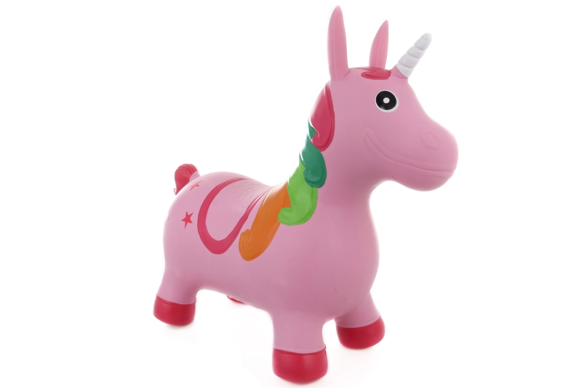 A mókás, gumiból készült, unikornis alakú ugráló minden gyermeket megörvendeztet. Stabil ülést, könnyű ugrálást kínál, és támogatja a mozgást és az egyensúlyt. Tartozék a pumpa, maximális teherbírása 50 kg, valamint kényelmes, 27 cm-es ülésmagasság.