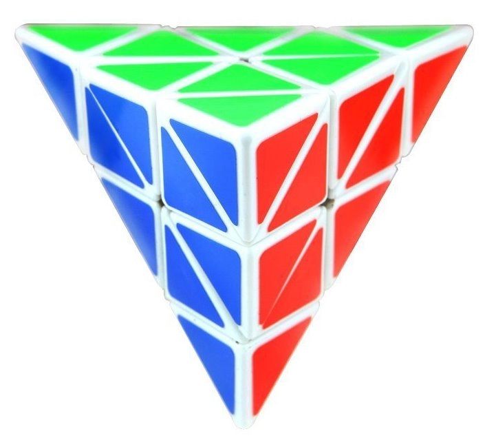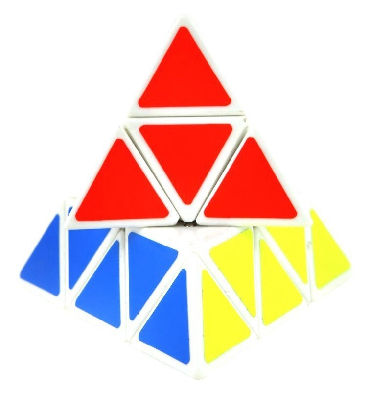 A piramis csúcsai egymástól függetlenül forgathatók, ami új lépéslehetőségeket ad és gyorsítja a megoldást.