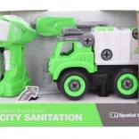Szórakoztató és fejlesztő csavarozható, távirányítós szemetesautó 3 éves kortól. A gyerekek a mellékelt csavarhúzóval vagy fúróval könnyedén összeszerelik a járművet. A motort az autóba helyezve előre és hátra irányítható, az autó ráadásul valósághű hangokat ad ki. Interaktív játék, finommotorika fejlesztése és egyszerű irányítás egyben.