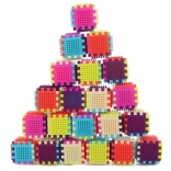 A vidám színek és a könnyen illeszthető kockák tornyok, házikók és fantáziaalkotások építésére ösztönzik a gyerekeket.