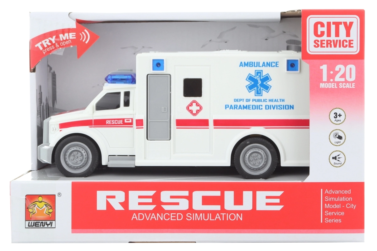 A valósághű műanyag mentőautó 3 éves kortól örömet szerez a kis mentőknek. A tetőn lévő gombok megnyomására világít és hangokat ad ki, nyitható ajtókkal rendelkezik, és a kicsomagolás után azonnal bevetésre kész – az elemek a csomagban vannak.