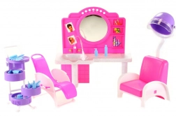 Alakítsatok ki saját kis fodrászszalont otthon a Glorie fodrászszalon játékszettel. A gyerekek kipróbálhatják a fodrász szerepét, kedvenc babáik haját formázhatják, és fejleszthetik fantáziájukat és finommotorikájukat. A valósághű elemek, mint a tükörrel és mosdóval ellátott fésülködőasztal, a fodrászszékek és a hajszárító búra (dekoratív, nem működő) autentikus hangulatot adnak a játéknak.